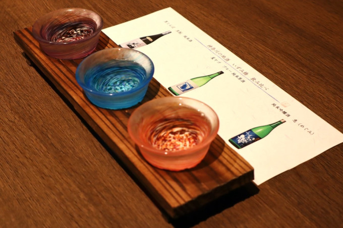 翠松園的晚餐是和食,給人的第一印象就是精緻,非常精緻。菜單有整整一大篇,種類特別多,但是每一種的量並不大,這樣能在一餐當中品嚐到盡可能多的美味。還有酒,不知道該喝什麼那就先來一個“飲み比べ”,等心裡有譜了再接著點。