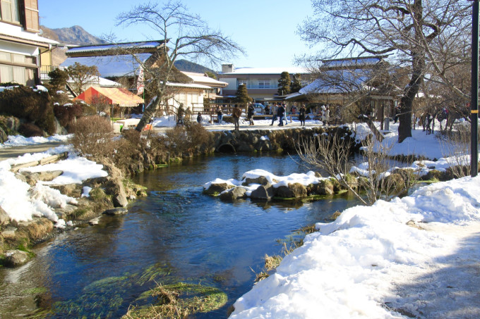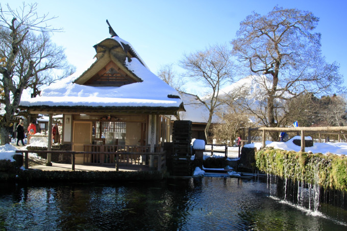 【忍野八海】源於富士山頂的積雪,經過地底的熔岩石過濾、沉積了八十多年才終於流進忍野八海,因此泉水相當清澈且含有大量礦物質,忍野八海也是以富士山為背景的絕佳拍照景點。這兩個景點是我認為此行最漂亮的,晚上入住的溫泉酒店正好面對富士山,泡著溫泉欣賞美景還是很愜意的!