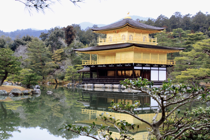 【京都金閣寺】金閣寺位於京都建於1379年,原為足利義滿將軍的山莊,後改為禪寺。其外以金箔裝飾,遂以金閣殿稱之,寺院也因此被喚作金閣寺。1950年,金閣寺被蓄意縱火燒毀,現在看到的金色建築是修復的。對這段歷史感興趣的朋友可以閱讀三島由紀夫的小說《金閣寺》。金閣寺是3層的樓閣,第一層為法水院;第二層為潮音洞,供奉著觀音;第三層是正方形的佛堂,供奉著三尊彌陀佛。金閣寺的建築與園林構造相融合,一旁的鏡湖池池水清洌,身影華麗的金閣倒映在鏡湖池中的景觀是京都的代表性景觀。