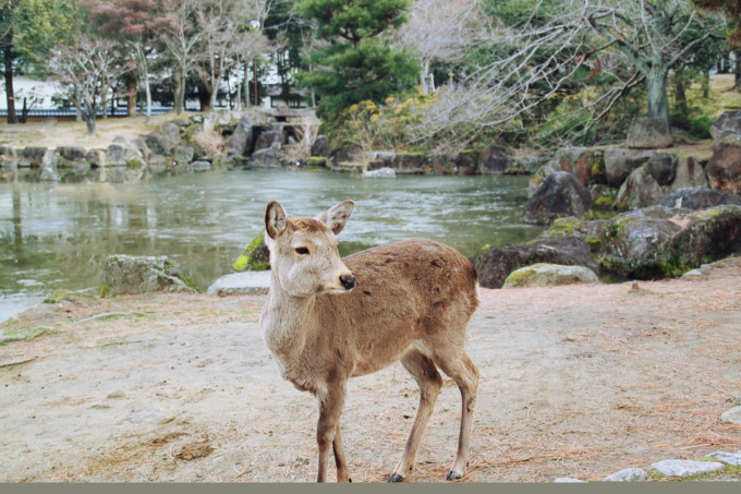 【奈良神鹿公園】奈良公園在佔地遼闊,囊括了由天平時代(710-784年)延續下來的東大寺、興福寺以及正倉院等名勝古蹟,是一座規模雄偉、綠樹成蔭的歷史公園。有名的是春日大社的鹿群,它們被看成是神的使者而受到人們的悉心照顧。冬天的公園其實光禿禿的,並沒有照片好看。