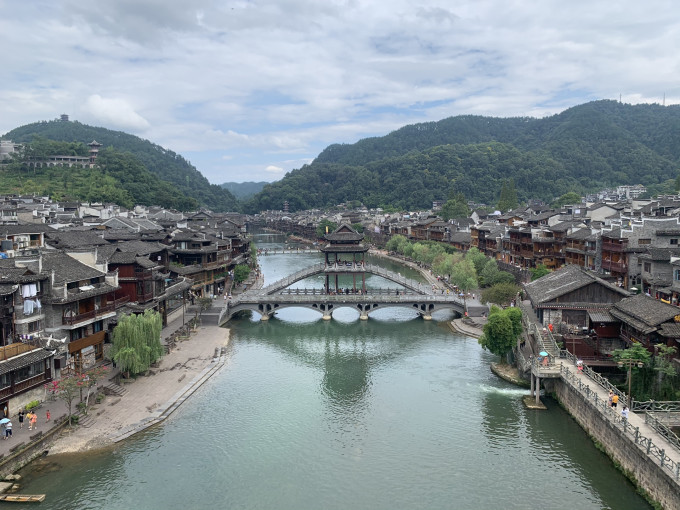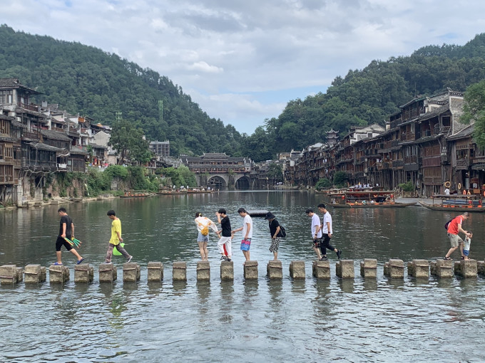 第四站是鳳凰古城,沱江的水真的很清澈,我沿著古城兩邊的步行街走了一遍又一遍,在沱江的兩岸和江中的跳岩上也是來來回回走,我也是閒的慌的人,腦子也是嗡嗡的,哈哈😄。