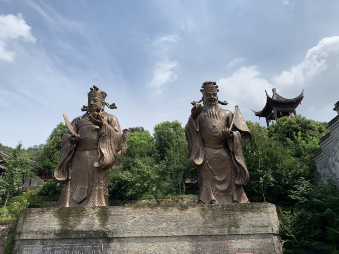 沿著石梯向上走到底是一座道觀,背靠山壁而建,蔚為壯觀。門口有一聯:“道高龍虎伏,德重神鬼欽”。應該是提醒世人在世間要向自己的內心尋求答案,提高自己的道行能力和品德修養,才能折服世間的龍虎神鬼。