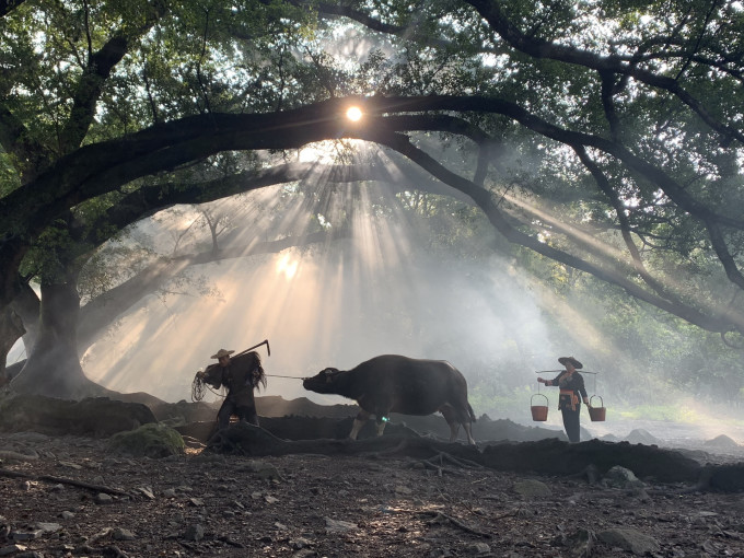 在楊家溪的攝影,農夫與牛走在清晨陽光下開始一天的忙碌,雖然是擺拍,氛圍卻也格外有感覺。在這裡也見到了八百年的大榕樹,時光荏苒,依然蒼翠茂密,內心有種“人生百年匆匆過,不笑蒼生笑吾生”的感慨。