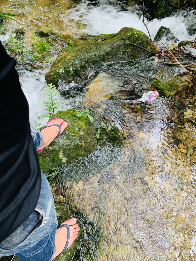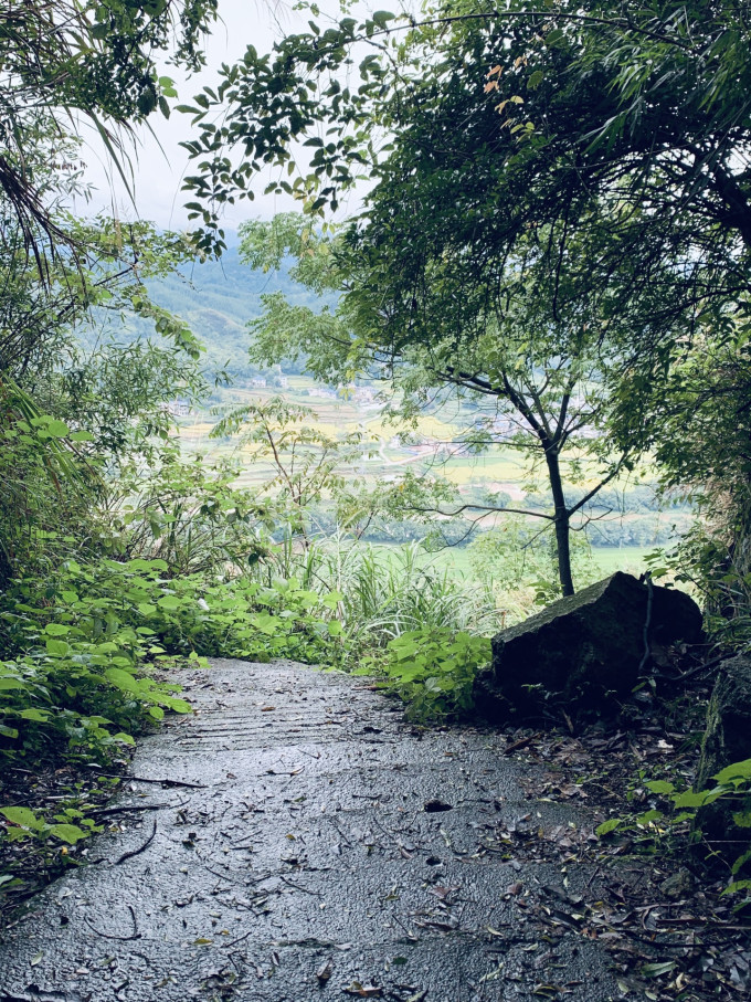 當天下了小雨,走了一段泥濘的小路,終於找到了岑山。山腳下首先是一個挺大的水庫,周邊都是樹,風景還不錯。本來我也沒有抱多大的希望,我就沿著鋪好的石階小路一直走著,空氣是格外清新,路兩邊水流聲潺潺、遠處山峰處還有幾處小瀑布,身在其中,渾身充滿活力。