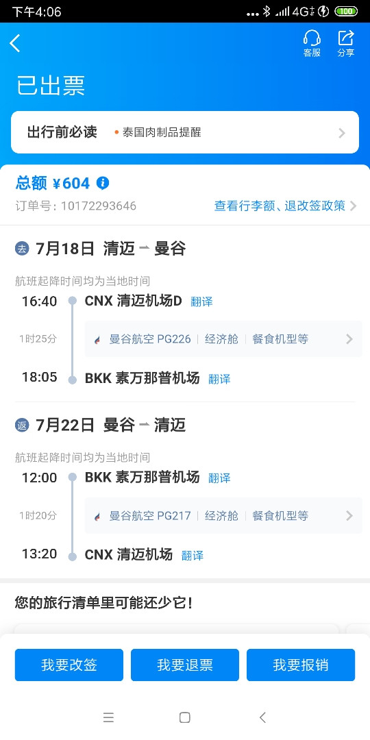 上週一臨時通知週四需前往曼谷四天,正直暑假出行高峰加上臨時出行未提前訂機票,各大平臺查詢清邁-曼谷往返機票基本上最便宜的廉航也最少需要500元人民幣以上!這對一直以來提前預定Thailand泰國境內單程廉航班次200元以內甚至更低的價格,廉航價格毫無優勢可言!此時看到曼谷航空一組非常漂亮的出行時間往返只售600元人民幣,毫不猶豫直接下單!展開這次體驗之旅…