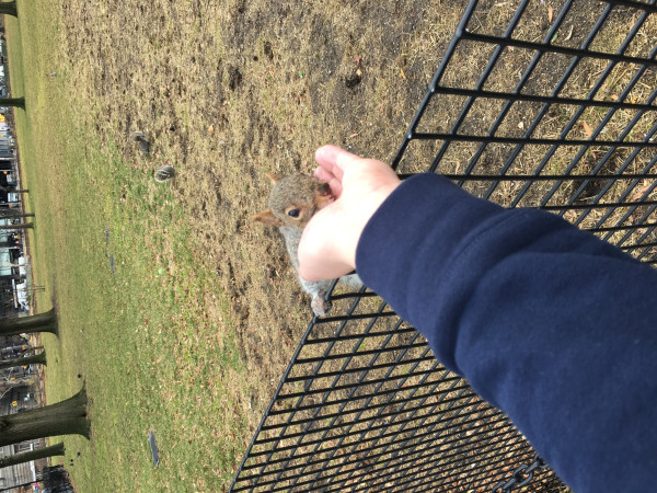 - 大家去看自由女神的時候,都會路過砲台公園,叫Battery Park,說公園,其實超級小,但是呢,草坪上有好多小松鼠,蠻餓的那種,你一伸手,就跑到你的手上,可好玩了。